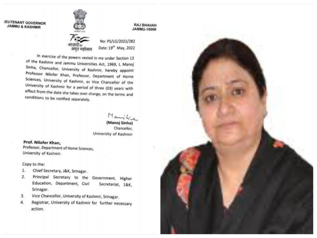 SRINAGAR The Lieutenant Governor, Manoj Sinha on Thursday appointed Professor Neelofer Khan as the new Vice-Chancellor of the University of Kashmir for a period of 3 years.