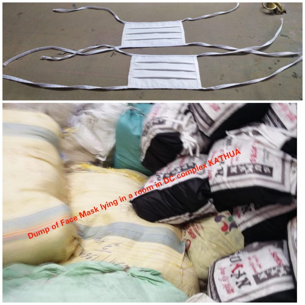 The case in reference is district Kathua where the administration after purchasing bulk face mask has dumped the same inside a room in DC complex.
